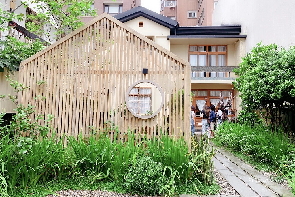 漂亮的日式庭院,有點無印良品風的感覺,綠化植栽做的很好,塑造一個城市中的小森林的氛圍…