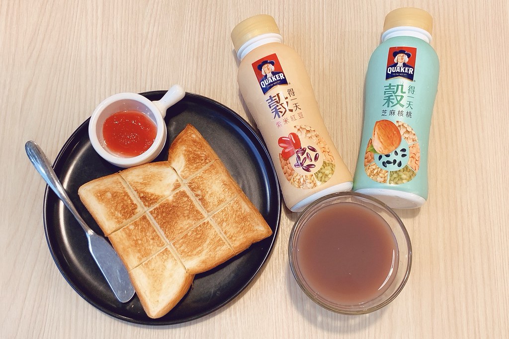 早上趕時間的話,只要烤一片吐司再配一杯桂格穀得一天,就是簡單又營養的早餐,準備時間不到三分鐘,超方便!
