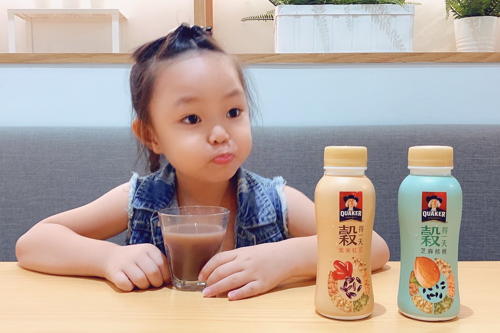 小櫻桃下課回到家之後,看到冰箱裡有桂格穀得一天就說她要喝,在吃晚餐前先暫時充飢,因為沒有添加香料、膠、色素和防腐劑,所以媽媽也很放心給小孩喝…
