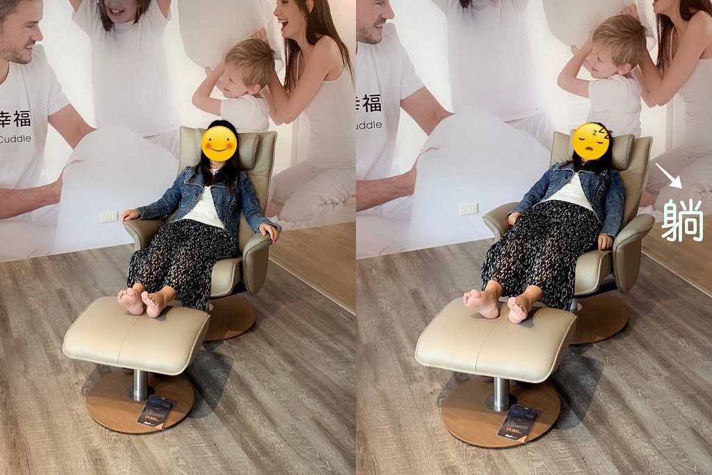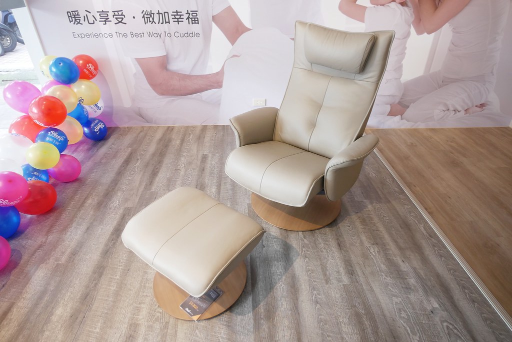 這椅子不但包覆感十足,而且很柔軟舒適,坐上上面應該連電視都還來不及打開應該就睡著了吧?