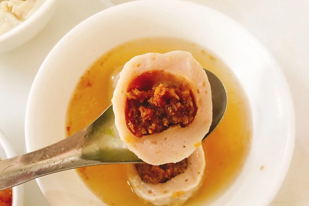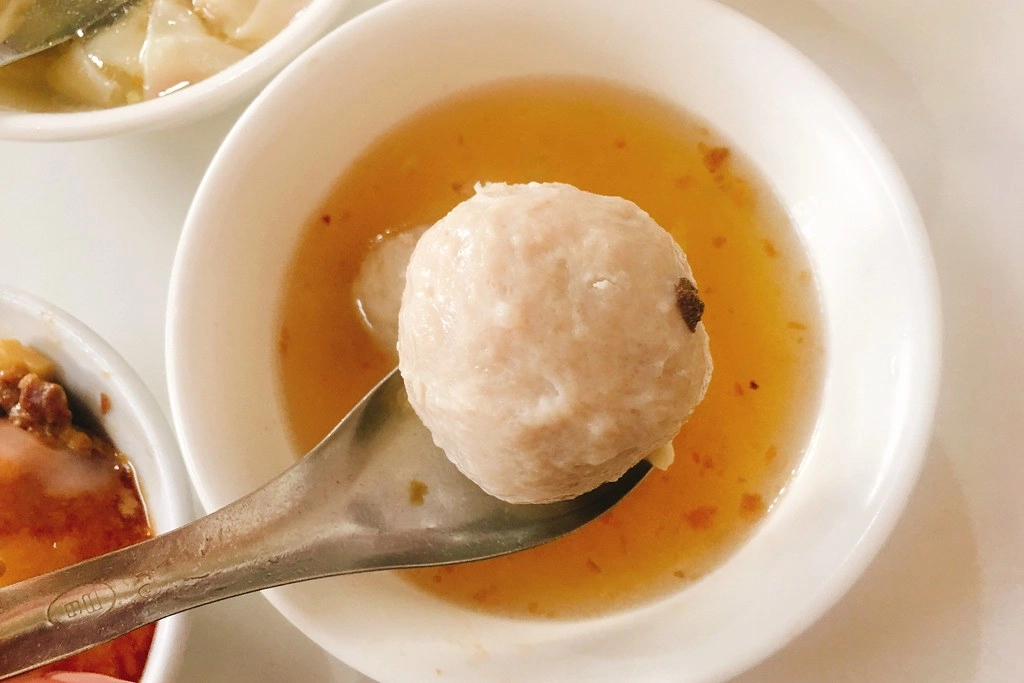 貢丸不只是貢丸哦!它裡面還有包餡,帶有油蔥酥的味道,還滿好吃的…