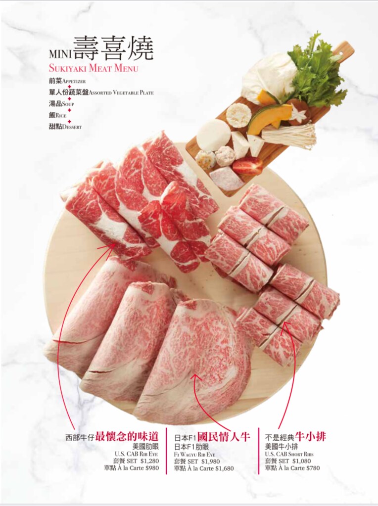 肉品 – 「但馬家 mini」的肉品是使用美國Prime等級的,肉品都有經過美國CAB認證,甚至還有日本F1肋眼牛排和掛川酵母豚可以選擇…