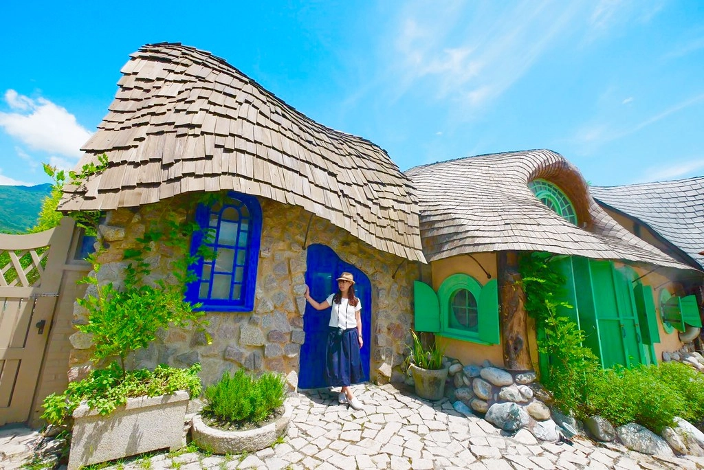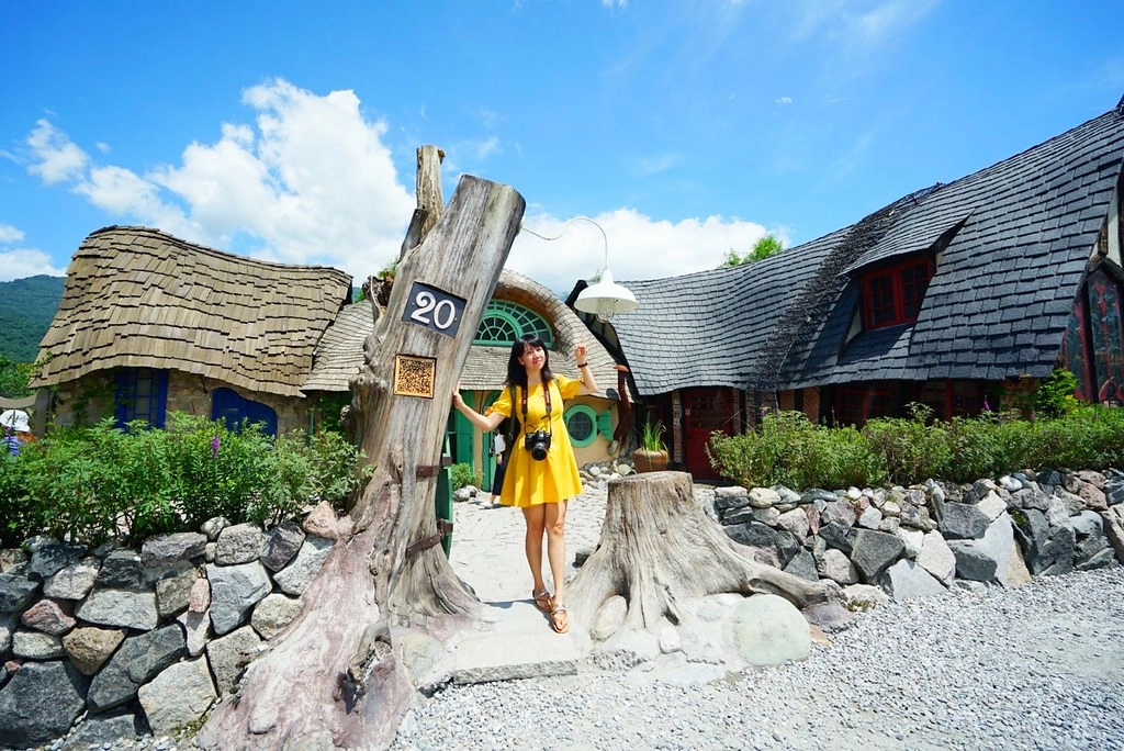 以魔戒哈比村為設計概念,打造出一個童話村般的場所,不過這個區域好像不能進入,而且這天剛好有工人在施工,所以把車子放在裡面,我們為了拍照還要閃一下鏡頭…