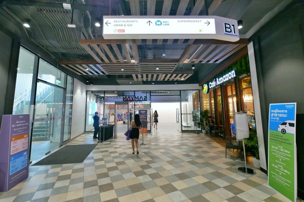 搭乘地鐵MRT在Samyan下車站,往#2出口就可以看到「Samyan Mitrtown」的白色招牌,接著再通過一小段隧道就可以直接抵達Samyan Mitrtown商場…