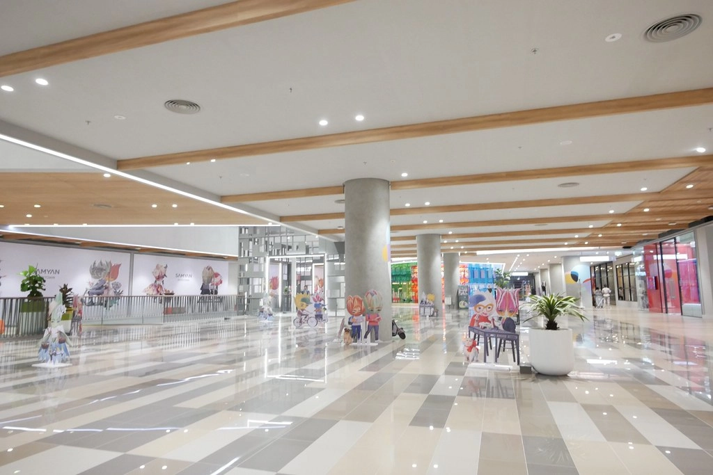 整棟商場是以天井設計,一樓是挑高,當天去的時候剛好有車場,不確定是不是常態的…