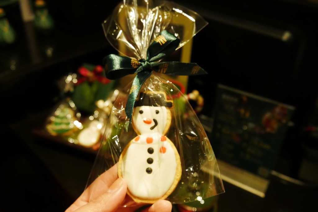 正值12月的聖誕季,櫃檯人員還送了我一支雪人造型的餅乾,我把它帶回家送給小櫻桃了…