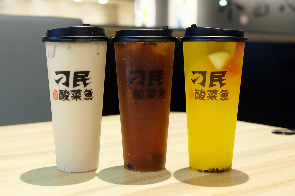 神級奶茶 / 陳釀烏梅汁 / 四季水果茶 – 最右邊的水果茶是我的,我覺得滿好喝的,不會輸給飲料專賣店的水準!