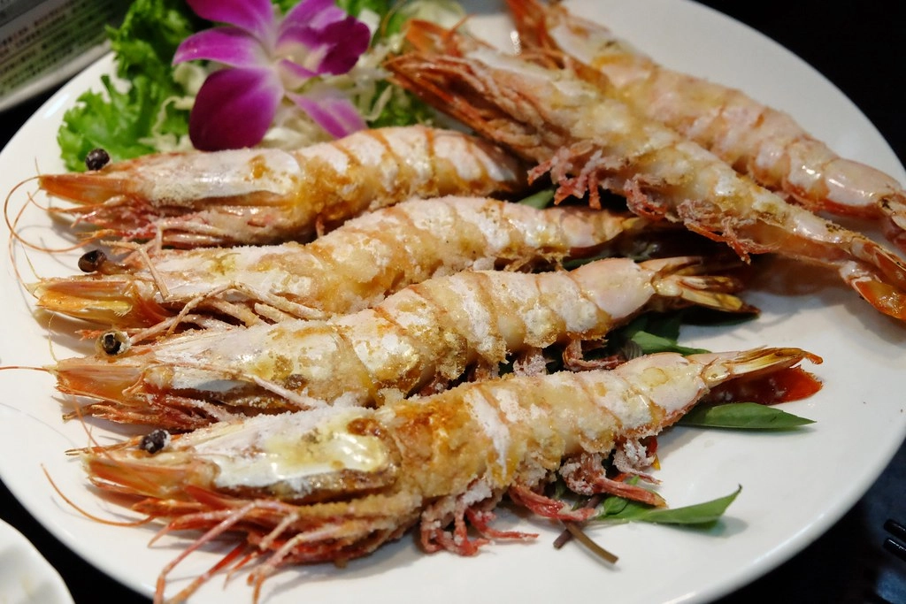 這鹽焗海蝦超大一隻的,忍不住叫小櫻桃拿起來當比例尺,結果這天真的小孩居然拿起來就一口塞,被鹹到!XD