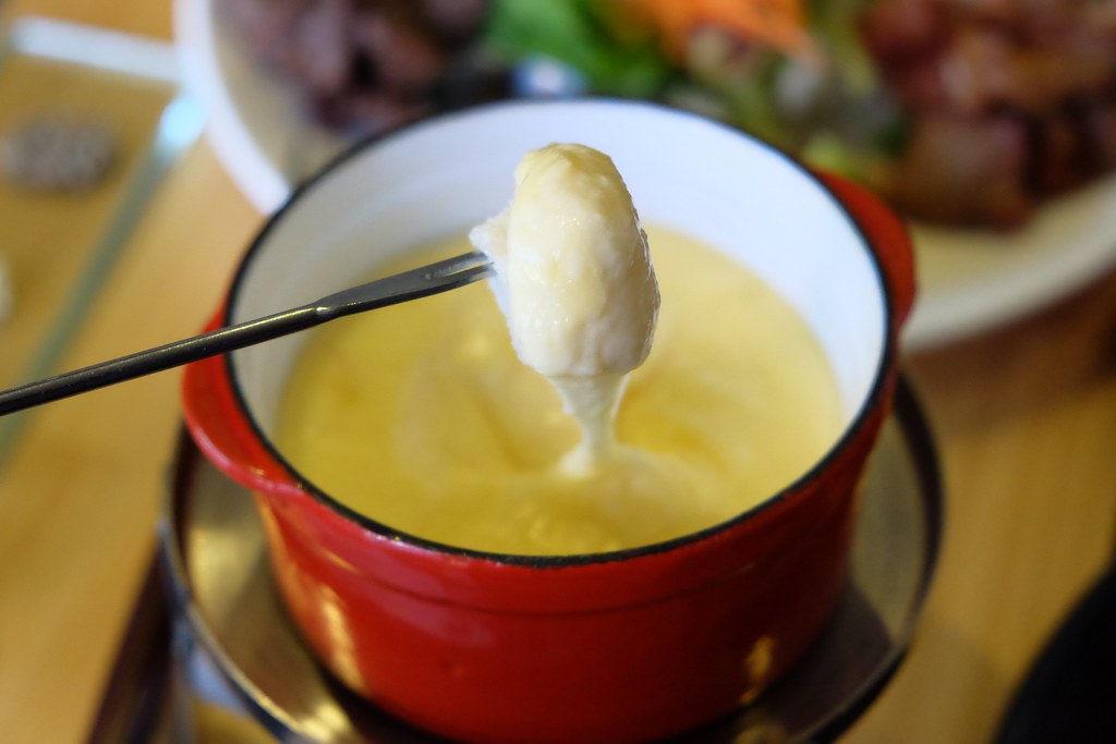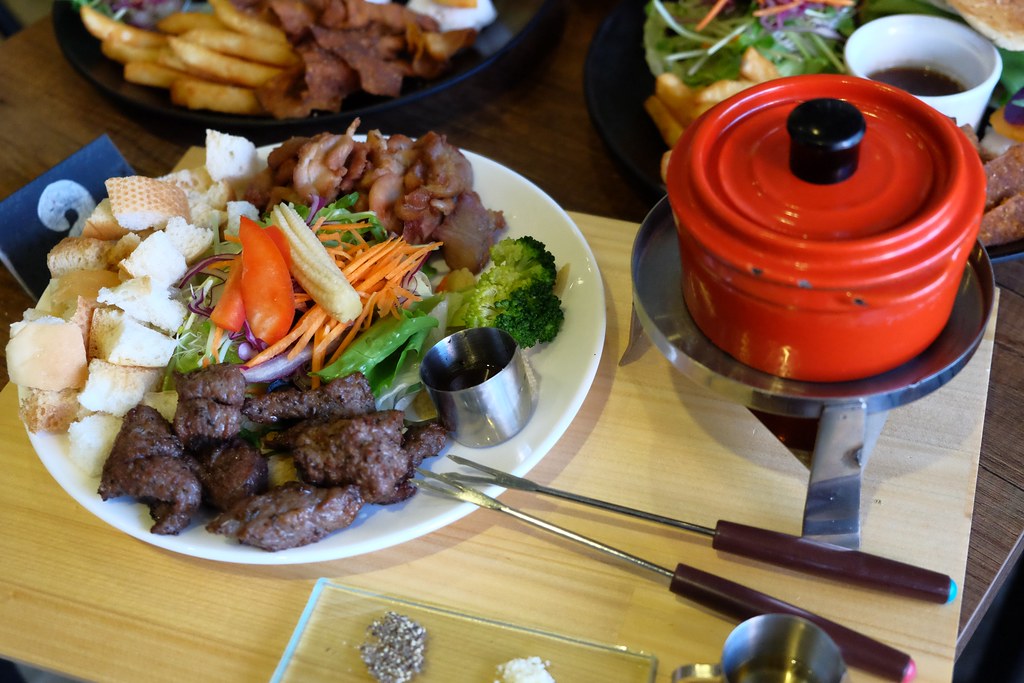 義大利香草起司鍋 – $270元,這道就是以Mozzarella Cheese為基底的起司鍋,搭配骰子牛、雞柳塊、法國麵包和鮮蔬…等主食。
