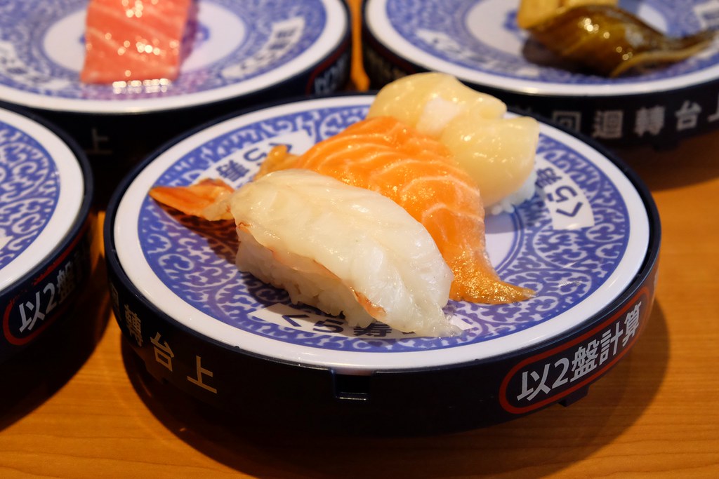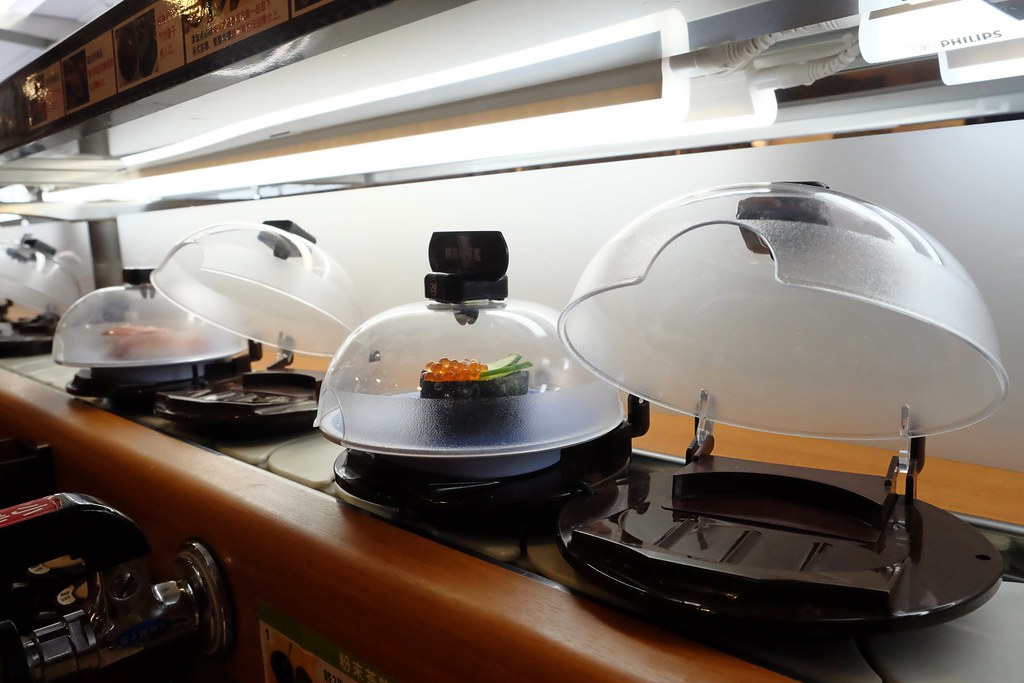 除了迴轉壽司檯上的餐點可以自行拿取之外,也可以透過螢幕點餐哦!餐點會透過輸送帶”咻”一下傳送到桌邊,這個小孩子看到都超嗨的!