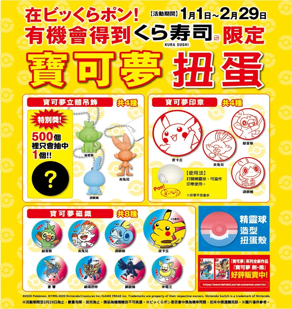 「藏壽司」這次和寶可夢合作,1/1~2/29期間推出了16款以皮卡丘和寶可夢等角色設計的商品…