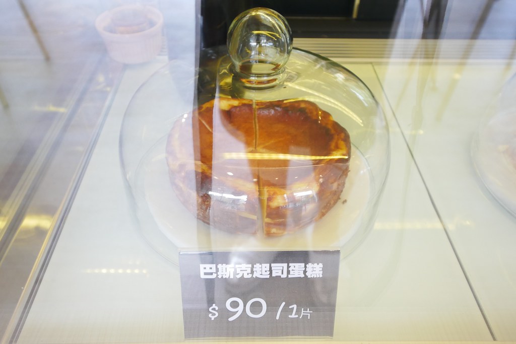 櫥櫃裡擺放著甜點,聽闆娘說這些都是他們自已做的…