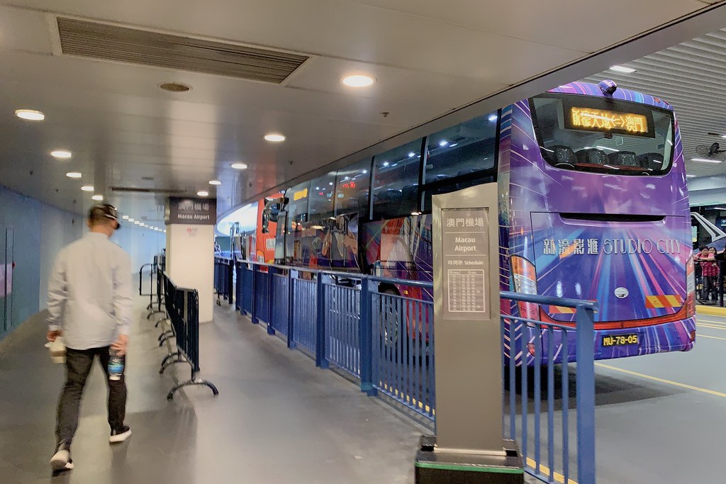 我們這天是從機場出來右轉前往”酒店接駁車”的搭乘處,搭乘「新濠天地」的接駁車到「新濠天地」之後(車程大概5分鐘),再步行到地下室搭乘前往「澳門半島」的接駁車,終點就是英皇娛樂酒店了(車程大概20分鐘),非常方便啊!