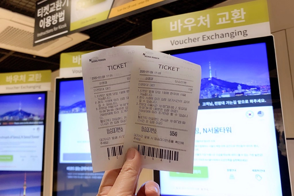 拿著QR Code直接在機器操作就好,我買了一大一小的票券,因為介面是韓文,我就靠直接操作…