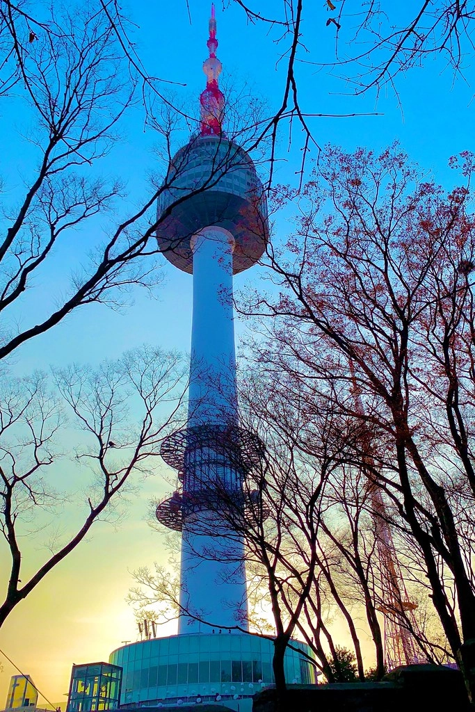 傍晚的首爾塔在整個夕陽的映襯之下,顯得好漂亮…