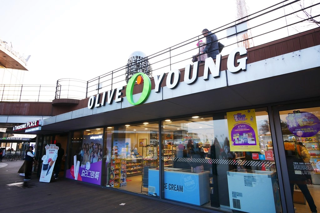 一樓廣場有Olive Young便利商店,第一次在韓國逛便利商店的小櫻桃看到什麼都很好奇,什麼都想買…