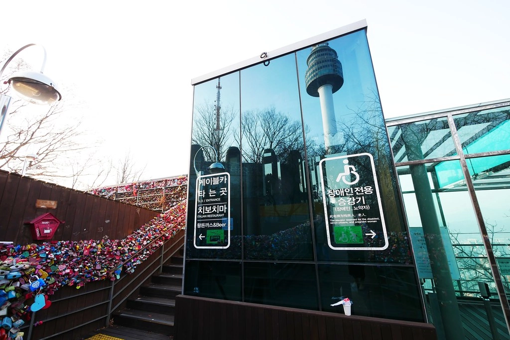 1. 搭乘地鐵到424明洞站下車,從4號出口走出來,步行10分鐘就可以到南山電梯,再搭乘電梯到「南山纜車」售票處購買纜車來回車票,即可搭乘纜車抵達N首爾塔。