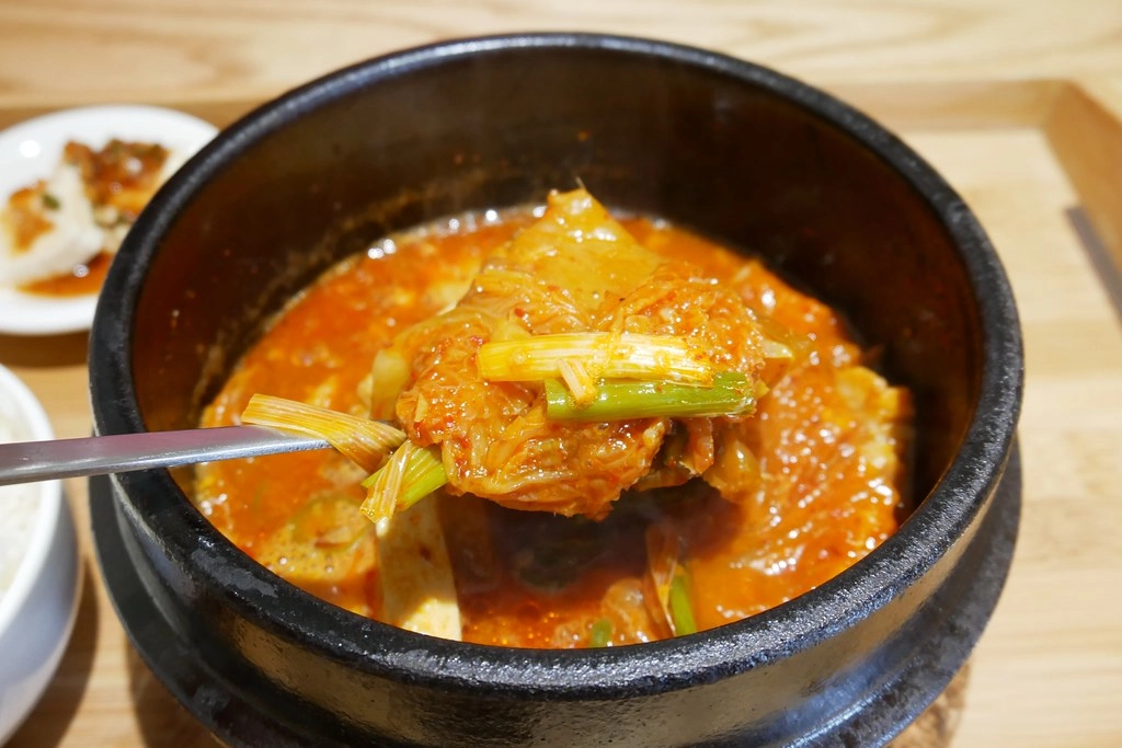 裡面除了有泡菜和豆腐之外,使用的是比豬五花肉,相對比較厚實有口感…
