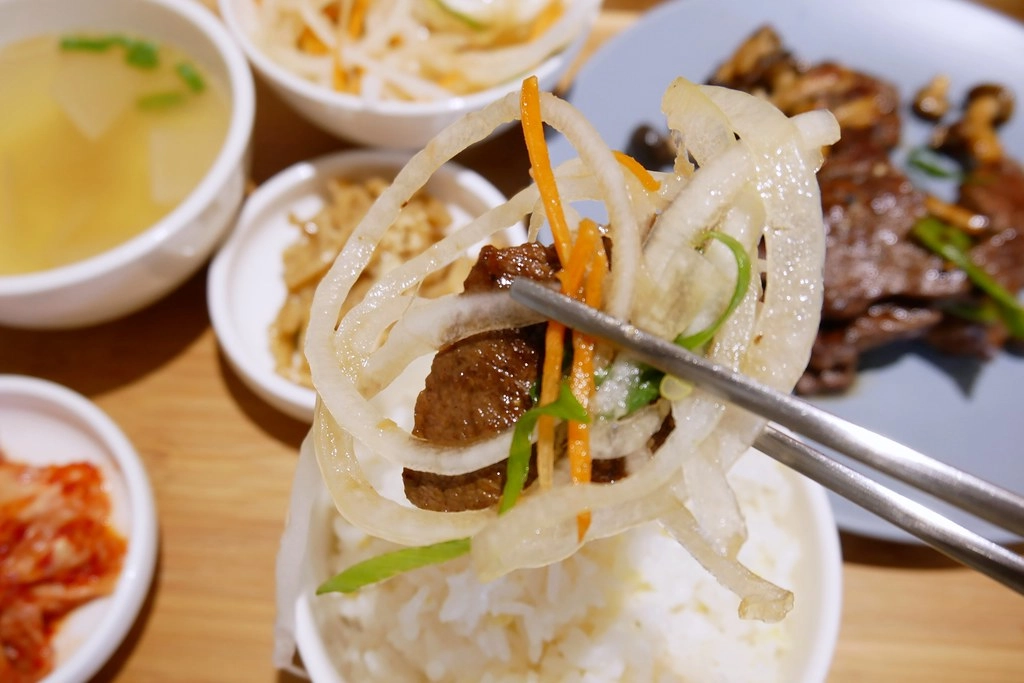 餐點送上桌的時候闆娘有交代牛肉可以挾著生洋蔥一起吃,我其實不太敢吃生洋蔥,不過這個沒有嗆味,反而有點甜甜的…