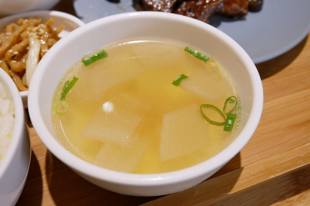 附的湯是蘿蔔湯,很清爽好喝…