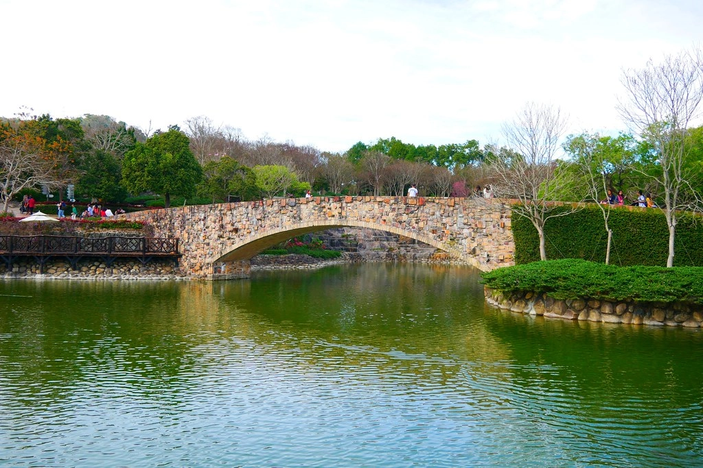 從橋的這個方向拍過去整個景觀更美了,而且湖水好翠綠,真的有歐洲古堡的感覺…