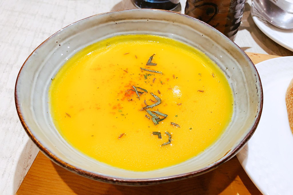 湯品應該南瓜濃湯來著,味道不會很濃郁,比較偏清爽…