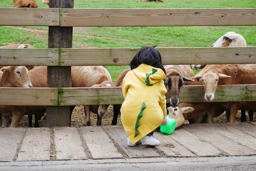在這裡可以買牧草餵羊,和羊羊的近距離接觸,小櫻桃覺得很好玩…