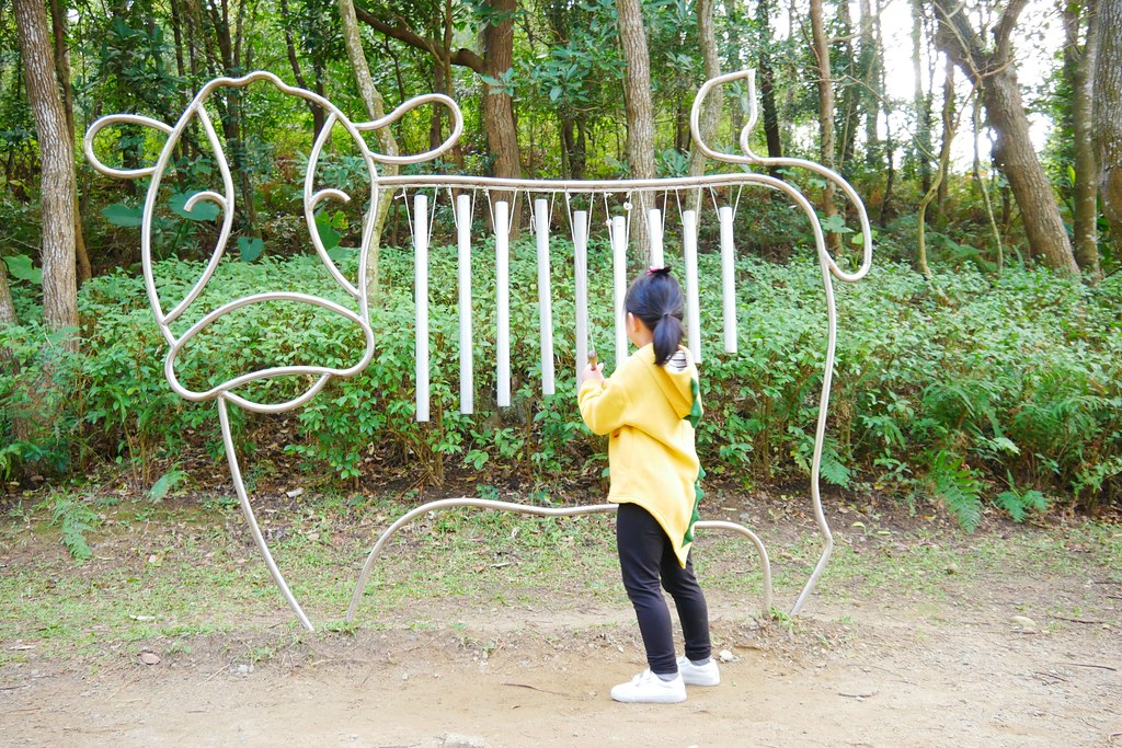 光是廣場就有一些遊樂器材可以讓小朋友玩,小櫻桃一度賴著不想走,不過我們跟她說前面有牛牛她才肯繼續前進…