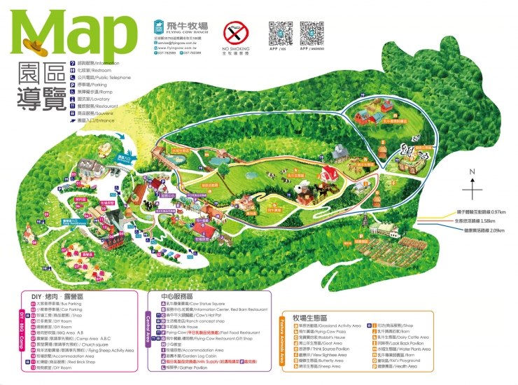附上一張園區導覽圖給大家參考,飛牛牧場總共分為: