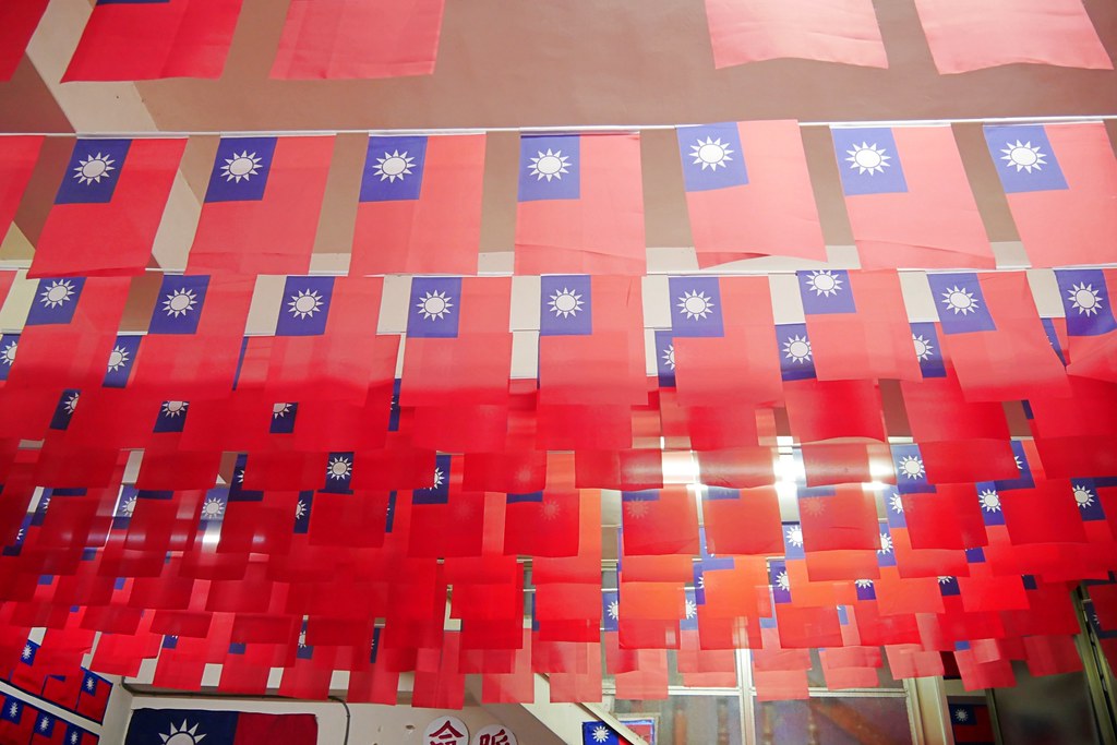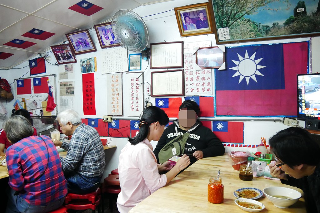 老店用餐位子不多,斜對面還有另外一區用餐區,一樣是裡裡外外都是旗海飄揚,老闆張老旺還說他光是這些國旗就花了30幾萬…