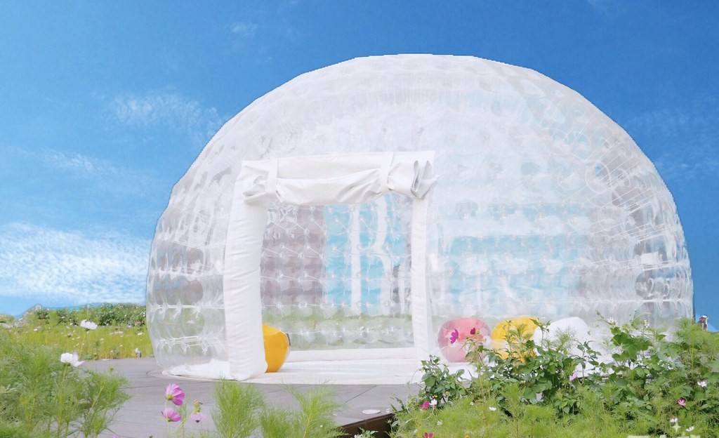 現場分別有三個不同的巨型透明泡泡座落在三處,沿著木棧道就可以欣賞每一個泡泡屋哦!