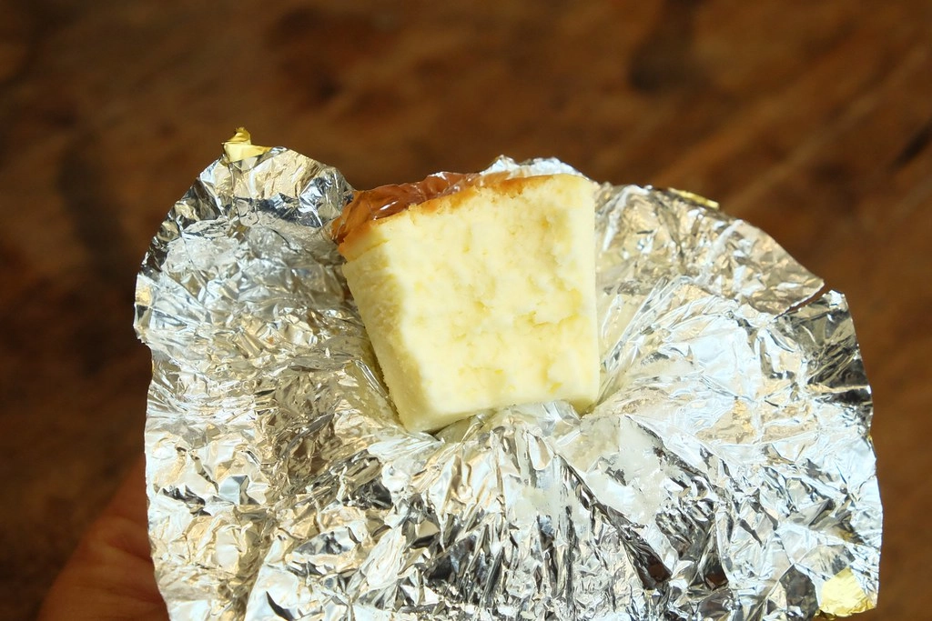 食用方式就是撕下貼紙然後把鋁箔紙慢慢打開,乳酪蛋糕的體積並不會太大,打開之後就可以直接吃了,完全不怕沾手…