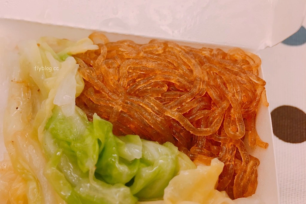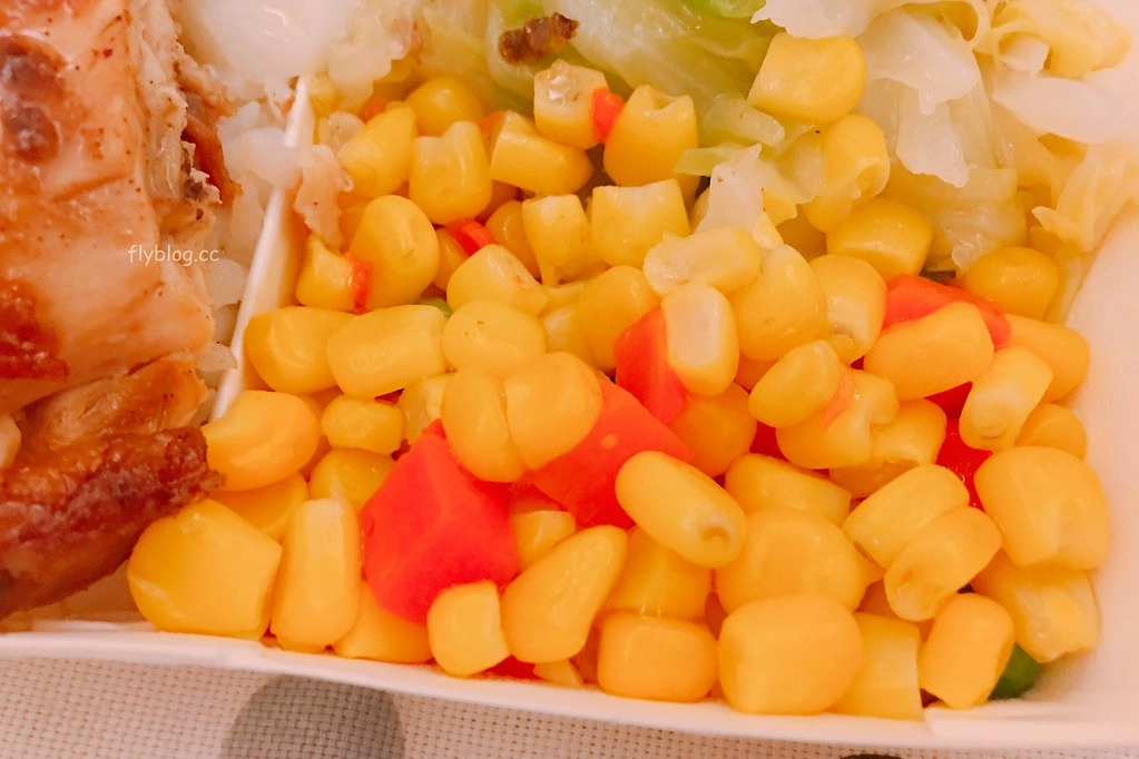 招牌配菜就是:冬粉、高麗菜和玉米…萬年不變!(現在便當店有這種嚴謹的SOP也真的是令人拍手!台中北屯|后呂村,興安路人氣便當店,炸雞腿超大一塊,招牌配菜數十年如一日 @飛天璇的口袋 )