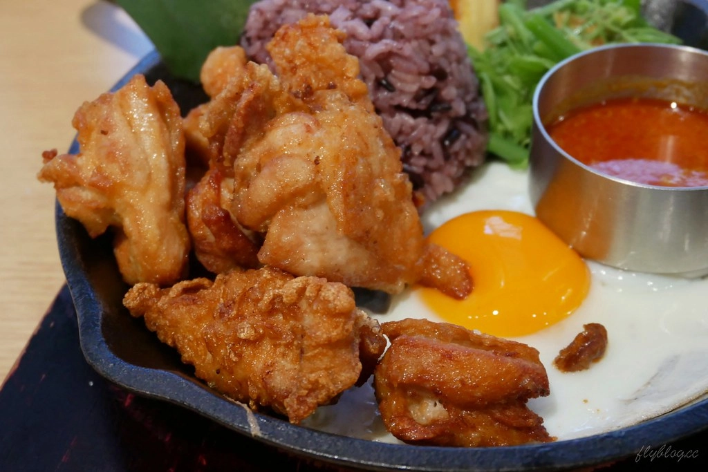 咖哩豬是真的不辣,小朋友也喜歡的味道,另外還有搭配半熟蛋、龍鬢菜和烤香蕉,主食搭配的是紫米飯,營養滿分…