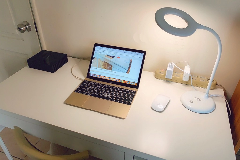 最後我還買了這個檯燈,因為我書桌的檯燈有點太大,想換一個比較不占空間的,而且要白色的比較搭我的書桌…