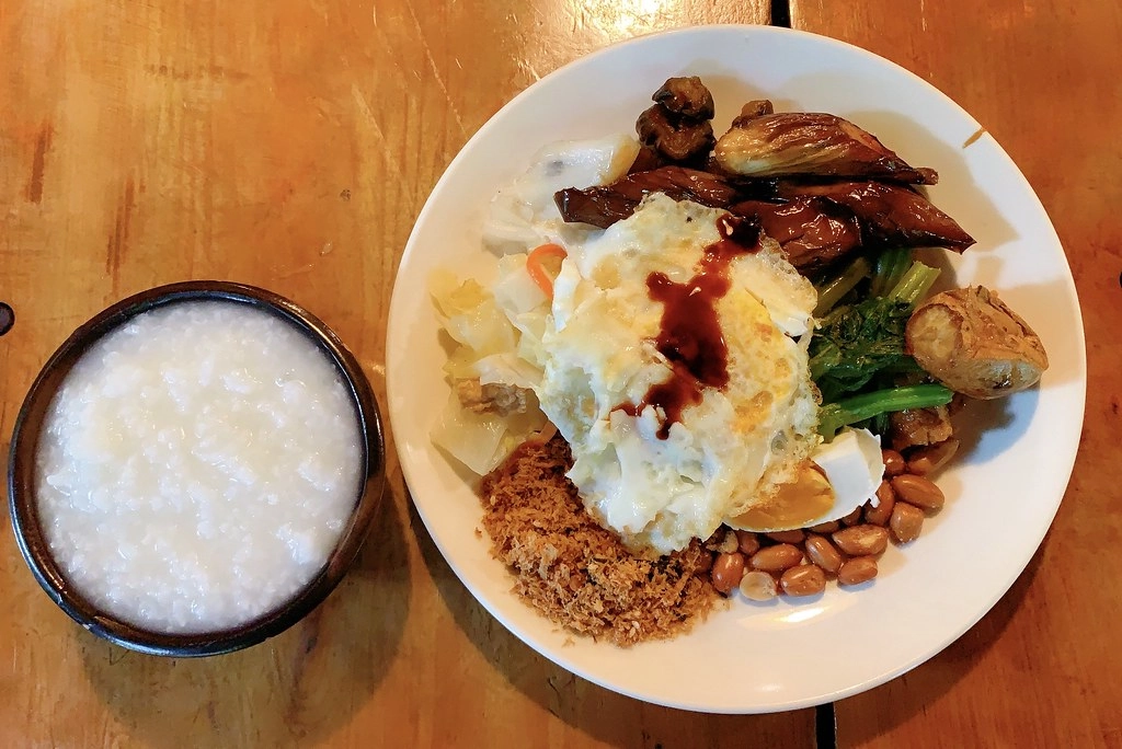 早餐的菜色都以奶蛋素為主,中式和西式都有,其實我早餐一向習慣吃麵包配咖啡,但是不曉得為什麼來到卓也小屋就是覺得吃粥飯比較搭!