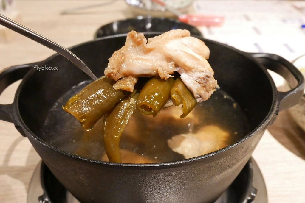 湯底還有雞肉和很多剝皮辣椒,我覺得夏天吃還滿開胃的。