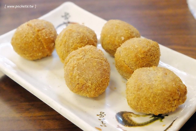 是用雞蛋豆腐下去炸的,所以口感比較軟嫩一些,搭配旁邊的韓式泡菜一起吃很不錯…