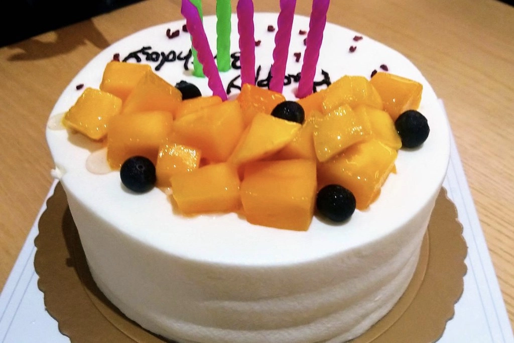 這是我很多年前吃到的威利與查理手作烘焙坊的芒果口味生日蛋糕,也忘了當時是誰生日了?